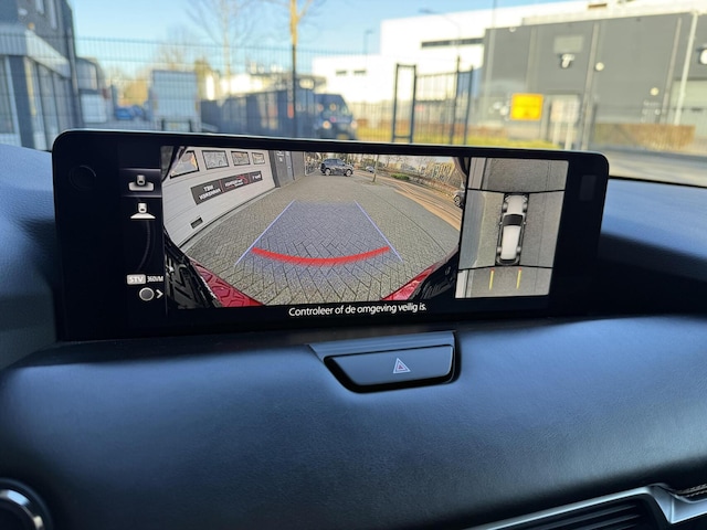 Stel de interface voor uw cockpit naar wens in met het digitale dashboard van deze auto. De vier camera's genereren samen een 360 graden beeld rond de auto, zodat u een volledig overzicht hebt van wat er rondom uw auto gebeurt. Adaptive cruise control houdt de ingestelde snelheid vast en houdt automatisch afstand tot uw voorligger. Veilig en comfortabel rijden wordt nog eens versterkt door Connected Services, zodat u diverse vitale functies van de auto altijd kunt checken in de app. De luidsprekers van het high performance audiosysteem omringen u met een uitgebalanceerd geluid. De Mazda is standaard voorzien van: dashboard met spraakbediening, full map navigatiesysteem, kruisend verkeer detectie, electronic climate control, schakelpaddles aan het stuur en draadloos opladen.