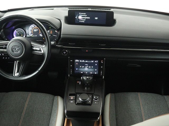 Onder alle omstandigheden perfect zicht op wat zich achter de auto afspeelt: de achteruitrijcamera zorgt ervoor! Adaptive cruise control houdt de ingestelde snelheid vast en houdt automatisch afstand tot jouw voorligger. Deze Mazda MX-30 is 'connected'. Belangrijke functies worden permanent gemeten en zijn uit te lezen via een speciale app, ook op afstand. Zo kan muziek in de auto klinken: het high performance audiosysteem levert topklasse geluid! Electronic climate control regelt volautomatisch de temperatuur. Jij kiest de gewenste temperatuur en het systeem doet de rest. Ook navigatiesysteem, DAB ontvangst, regensensor, keyless entry, automatisch dimmende buitenspiegels en centrale deurvergrendeling met afstandsbediening horen tot de voorzieningen op deze auto.