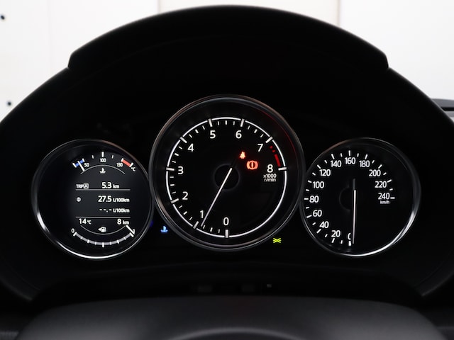 De geavanceerde technologie in deze Mazda is in staat om onderweg het verkeer om je heen te monitoren en er op te reageren. Zo heb je als het ware een automatische co-piloot aan boord. Bij de veiligheidssystemen van deze auto hoort ook de verkeersbord-detectie. Die leest tijdens het rijden als het ware met je mee en attendeert je op de significante verkeersborden langs en boven de weg. Het Lane-keeping systeem registreert permanent of je binnen de lijnen van de rijstrook blijft; dwaal je onbedoeld af, dan waarschuwt het systeem en corrigeert de koers. Een belangrijk veiligheidssysteem in deze auto is de vermoeidheidsherkenning, die je een duidelijk signaal geeft wanneer je achter het stuur in slaap dreigt te vallen. De auto is ook uitgerust met autonoom remsysteem en bandenspanningcontrolesysteem.