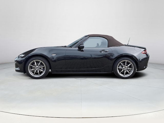 Het karaktervolle uiterlijk van de Mazda MX-5 doet niets af aan het feit dat dit een comfortabele en bijzonder praktische auto is. Deze nieuwe auto is nu uit voorraad leverbaar. Voor de aandrijving van deze auto zorgt een compacte motor. De auto is voorzien van leren bekleding - een fraaie en sfeerverhogende extra. De verwarmbare voorstoelen benadrukken nog maar eens dat we hier te maken hebben met een regelrechte verwenauto voor bestuurder en bijrijder. Ook is de auto voorzien van: 16 inch lichtmetalen velgen, LED koplampen, LED-achterlichten, elektrisch bedienbare en verwarmde buitenspiegels, elektrisch bedienbare ramen voor en windscherm.