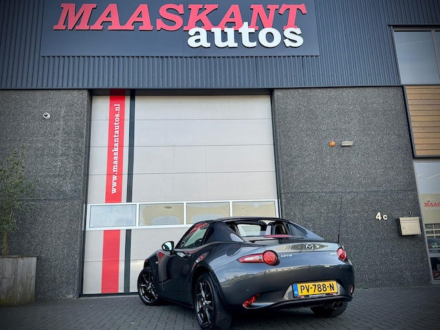 Zeer aantrekkelijke origineel Nederlands geleverde Mazda MX-5 RF 2.0 SkyActiv-G160 GT-M Automaat in het Machine grey (wat de Mx5 RF waanzinnig staat! Een geliefde uitvoering met veel luxe en zeer sportieve uitstraling.