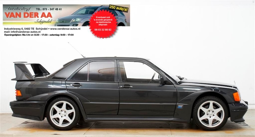 Voor de beleggers!! En liefhebbers ,Zal deze Mercedes-Benz 190 2.5-16V eVOLUTION 2 Nummer 365 van de 500 Stuks ook binnenkort 2.1 Miljoen Euro gaan opbrengen? Een Ferrari F40 uit 1991 waar er 1600 van zijn gemaakt heeft de waarde in 2024 al bereikt!! Terwijl een Mercedes-Benz met deze Historie en minder bouw oplages eigenlijk nu al meer waard had moeten zijn!! Autobedrijf Van Der Aa is een universeel BOVAG Autobedrijf met een Moderne werkplaats en een bestaan van meer dan 50 jaar. Wij zijn gespecialiseerd in Jonge, Schadevrije auto's, waarvan altijd de volledige historie bekend en ter inzage is. Daarnaast zijn wij Sinds 1972 zeer goed in de Verkoop van Oldtimers-Youngtimers dit Fiscaal vriendelijk rijden is zeer interessant voor de zakelijke rijder en voor de Beleggers onder de oude auto's. Om ook de oudere mensen mobiliteit te geven hebben wij de sites WWW.IKWILHOGEINSTAPAUTO.NL en WWW.IKWILEENHOGEINSTAPAUTO.NL en WWW.HOOGZITTERSAUTO.NL en WWW.HOOGZITAUTO.NL U kunt ons altijd bellen of mailen of via Whattsapp om een zoekopdracht aan ons door te geven ,Wij gaan direct met u in gesprek en aan de slag. Het is ook altijd mogelijk een aankoopkeuring te laten uitvoeren. Onze bouwjaren, tellerstanden en prijzen zijn exact vermeld. Wij leveren auto's -eventueel met Garantie, APK en een Afleverings-Inspectiebeurt zonder afleveringskosten via de BOVAG site VIABOVAG.NL. Wij zijn de grootste en best gesorteerde Occasiondealer in de regio Schijndel. Wij hebben altijd rond de 80 auto's, motoren, vrachtauto's, bedrijfswagens, oldtimers, youngtimers en scooters op voorraad. De keuze is dus altijd ruim! . In onze werkplaats annex diagnosecentrum bent u ook voor onderhoud voordeliger uit,Wij zijn scherp in Zomer en Winterbanden en opslag,En Voor Apk Keuringen en totaal onderhoud. Ook hebben wij een vrachtauto/Autoambulance voor eventuele pech gevallen en of schade en of ruitbreuk, wij regelen alles met de verzekeringsmaatschappij en uw auto wordt weer totaal gerepareerd, kortom een Bedrijf waar u klant bent en blijft, Telefonisch altijd bereikbaar op 06-53328992 ook 's avonds en in het weekend en ook Whatsapp is erg makkelijk(Wij hebben een Foto studio met Filmpje van iedere auto)Dus deze kunt u via Whattsapp verkrijgen, stuur een berichtje en u krijgt de Film. U bent altijd van Harte Welkom!! Graag eerst telefonisch contact of de auto nog aanwezig is om teleurstelling te voorkomen ,De koffie staat klaar.!! < Omschrijving: