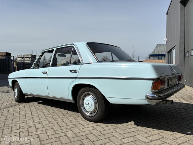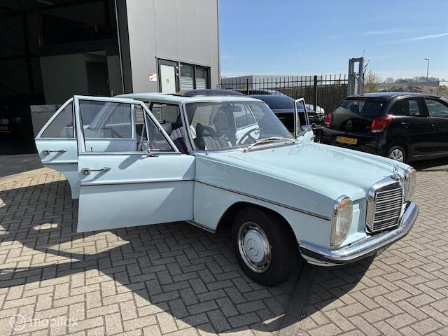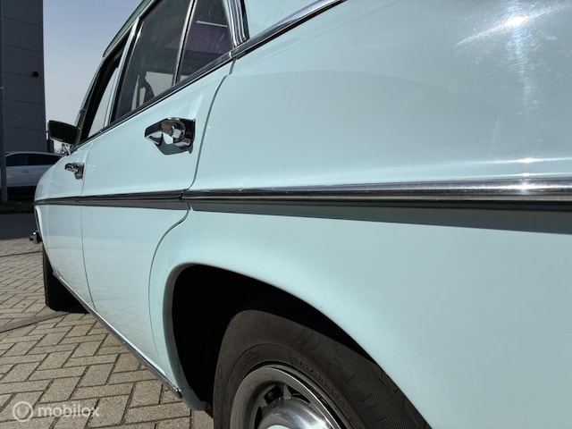 Uitgevoerd in de klassieke Mercedes kleur lichtblauw (vaak aangeduid als Pastellblau), wat perfect past bij het karakter van deze oldtimer en hem een tijdloze uitstraling geeft.