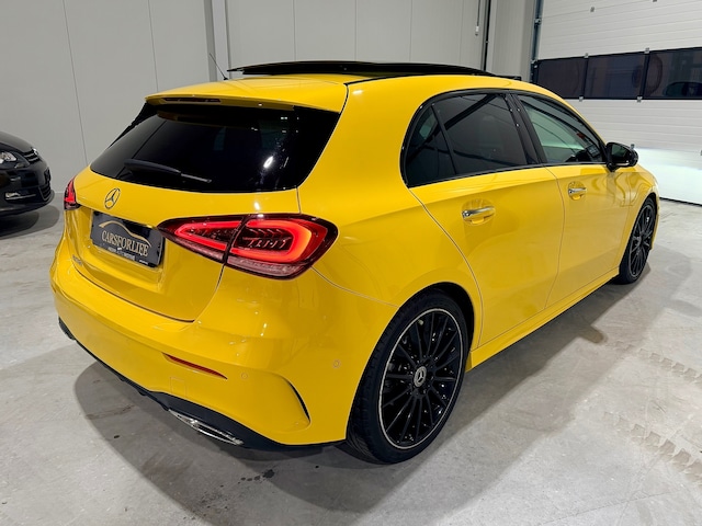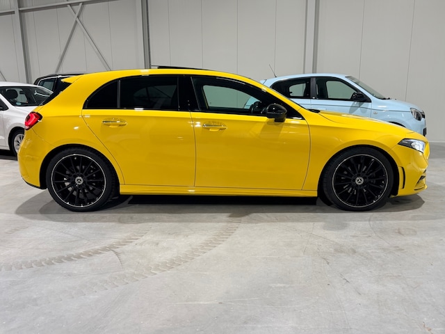 Een uitzonderlijk fraaie en rijk uitgevoerde Mercedes-Benz A-Klasse 180 AMG Line in de exclusieve kleur Sun Yellow. Een sportieve en onderscheidende verschijning met luxe, technologie en uitstraling op hoog niveau.