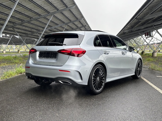 De Mercedes-Benz A-Klasse 180 Business Solution AMG is een dynamische hatchback die sportiviteit en comfort moeiteloos combineert. Met de AMG Line krijgt de auto een krachtige uitstraling, terwijl het panoramadak zorgt voor een ruimtelijk en licht interieur. Binnenin geniet u van hoogwaardige materialen en moderne technologie, waarmee elke rit comfortabel en plezierig wordt. De A-Klasse staat bekend om zijn wendbaarheid en premium uitstraling, en vormt zo de perfecte keuze voor wie stijl en praktisch gemak wil samenbrengen in een compacte hatchback