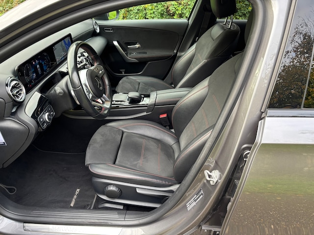 Alle technologie in deze bijzonder mooie Mercedes-Benz A 200 Premium Plus AMG Automaat is er op gericht om uw rit veilig en gemakkelijk te laten verlopen. Als u het over uitstraling hebt, dan kunt u niet om het effect van de AMG-styling heen. Een krachtige motor ( 163 Pk ) geeft deze auto zijn sportieve prestaties. Met één druk op de knop te openen, net als trouwens de elektrisch bedienbare achterklep. Zit u goed? De stoelen zijn eenvoudig instelbaar dankzij de elektrische bediening met geheugen. De koplampen met matrix LED-verlichting geven daglichtkwaliteit zonder tegenliggers te hinderen. Tot de uitrusting behoren ook 19 inch lichtmetalen Mercedes AMG velgen, AMG-styling, diffuser onder achter bumper met verchroomd uitlaatsierstuk, 7 traps automatische transmissie, verstelbare lendensteunen en variabele stuurbekrachtiging.