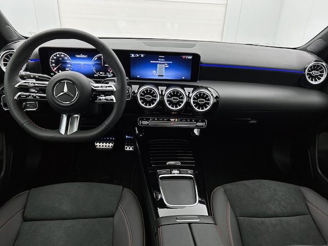 De Mercedes-Benz A-klasse vertegenwoordigt het beste van degelijk Duits design. Ten opzichte van het standaard model onderscheidt deze Mercedes-Benz zich met sportieve AMG-styling. Dit is een nieuwe auto, hij is nu direct leverbaar. Als jij een laag brandstofverbruik en goede prestaties belangrijk vindt, dan ben je uitstekend bediend met de viercilinder motor. Je past de stoelen moeiteloos aan, ze zijn elektrisch in te stellen en hebben bovendien een geheugen. Het glazen panoramadak zorgt ervoor dat je je omringd voelt door de omgeving. Koplampen voorzien van de allernieuwste lichttechniek, matrix LED-verlichting. Ook 18 inch lichtmetalen velgen, AMG-styling, dynamisch onderstel, in delen neerklapbare achterbank, LED-achterlichten en verstelbare lendensteunen horen tot de voorzieningen op deze auto.