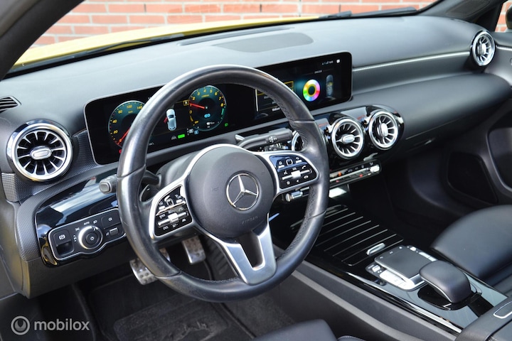 Met een auto als deze Mercedes A-klasse komt u absoluut goed voor de dag. Als u het over uitstraling hebt, dan kunt u niet om het effect van de AMG-styling heen. Minder vaak tanken? Dat gaat lukken, dankzij de hybride motor die zowel op brandstof als elektriciteit werkt. Een mooie combi, die merkbaar is in de portemonnee. Fijn hoor, zo'n elektrisch bediend glazen panorama dak. Voeg daaraan toe: het lederen interieur en u ziet hier een heel mooi uitgevoerde auto. Bij de complete uitrusting van deze auto hoort ook stoelverwarming. De kwaliteit van de LED-verlichting geeft het gevoel dat u bij daglicht rijdt. In deze auto profiteert u onder andere ook van: 19 inch lichtmetalen velgen, AMG-styling, warmtewerend glas, in delen neerklapbare achterbank en verstelbare lendensteunen.
