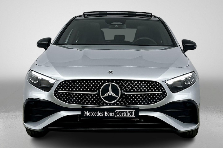 Deze Mercedes-Benz A-klasse is van de jongste generatie. Prestaties, brandstofverbruik - alles helemaal van nu. Mét al wat kilometers op de teller. Een nieuw model, maar onder de nieuwprijs! De AMG-styling van deze auto is zowel smaakmakend als spraakmakend. Het is vermeldenswaard dat deze auto maar 8289 kilometer heeft gereden sinds 2025. Met zijn benzinemotor en automatische transmissie is dit een prima auto voor nog vele kilometers. Deze Mercedes-Benz A-klasse legt bestuurder én bijrijder compleet in de watten met de verwarmbare voorstoelen. Ziet er goed uit, die sportstoelen. Maar waar het om gaat, is de solide zit onder alle omstandigheden. Het wijdse uitzicht door het glazen panoramadak maakt van elke rit een belevenis. Voorzien van matrix LED-verlichting. De auto dimt precies dat deel van de lichtstraal waar de voor- of tegenliggers in rijden. De overige segmenten blijven aan en verlichten de weg. Tot de uitrusting van deze Mercedes-Benz behoren ook AMG-styling, warmtewerend glas, in delen neerklapbare achterbank, LED-achterlichten, verstelbare lendensteunen en snelheidsafhankelijke stuurbekrachtiging.
