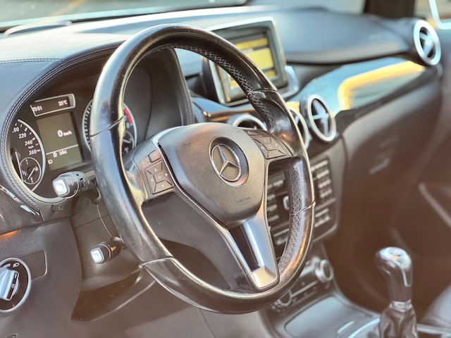 U bedient het navigatiesysteem en het audio-installatiesysteem via knoppen op het stuur. Zo kunt u steeds uw aandacht gericht houden op de weg. Deze Mercedes-Benz B-klasse is voorzien van sensoren aan de achterzijde om een achteropkomend verkeer waarschuwing te geven als de afstand tussen u en een achterligger te klein is. Superstrak parkeren wordt een eitje dankzij de parkeersensoren. Een heerlijke egale snelheid? Even de cruise control inschakelen! De sloten worden automatisch ontgrendeld dankzij de keyless entry. Fijne optie! En dan is deze auto ook nog eens voorzien van airconditioning, automatisch dimmende buitenspiegels, lederen stuur, centrale deurvergrendeling met afstandsbediening en boordcomputer.
