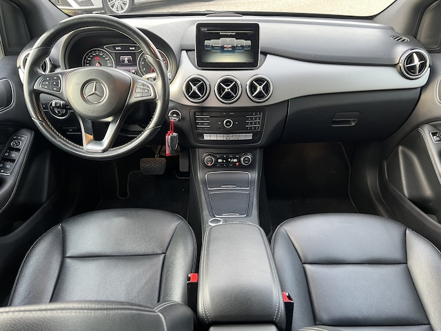 De bediening van het audiosysteem en het navigatiesysteem gebeurt met knoppen op het stuur. De achteropkomend verkeer waarschuwing is een mooie veiligheidsoptie, die middels sensoren in de gaten houdt wat er onderweg achter u gebeurt. Parkeerplekken worden er niet ruimer op. Maar met de aanwezige parkeersensoren krijgt u deze Mercedes-Benz B-klasse zonder problemen op z'n plaats. De cruise control geeft elke flitser het nakijken. Ja, airconditioning is er natuurlijk ook in deze auto. Met buitentemperatuurmeter, lederen stuur, centrale deurvergrendeling met afstandsbediening, bagage afdekhoes en boordcomputer is deze auto helemaal compleet.