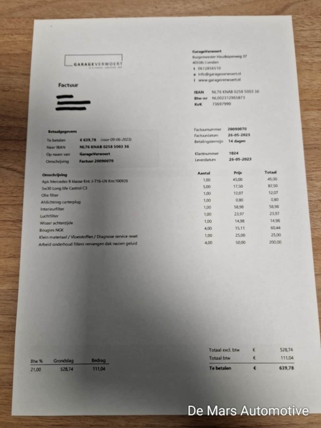 | APK | Bij aflevering |