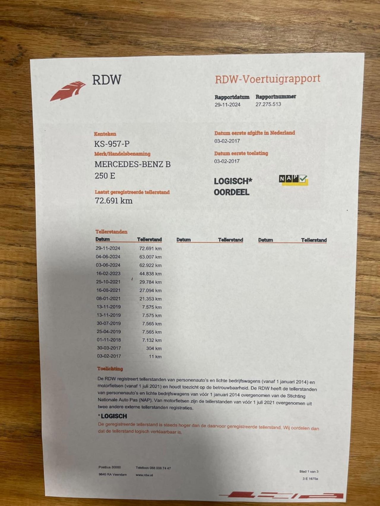 | Kilometerstand | 72.691 km |