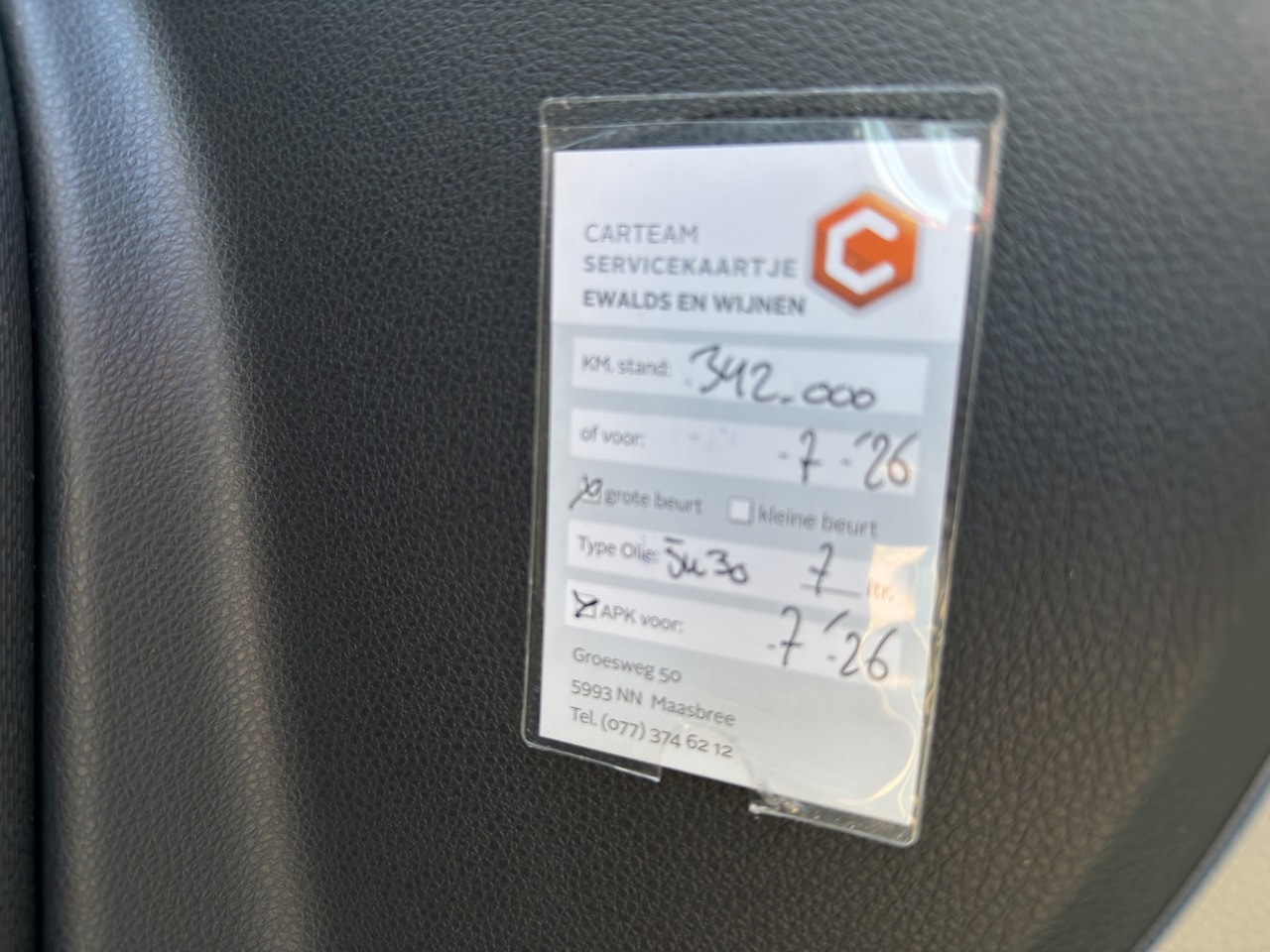 | APK | Bij aflevering |