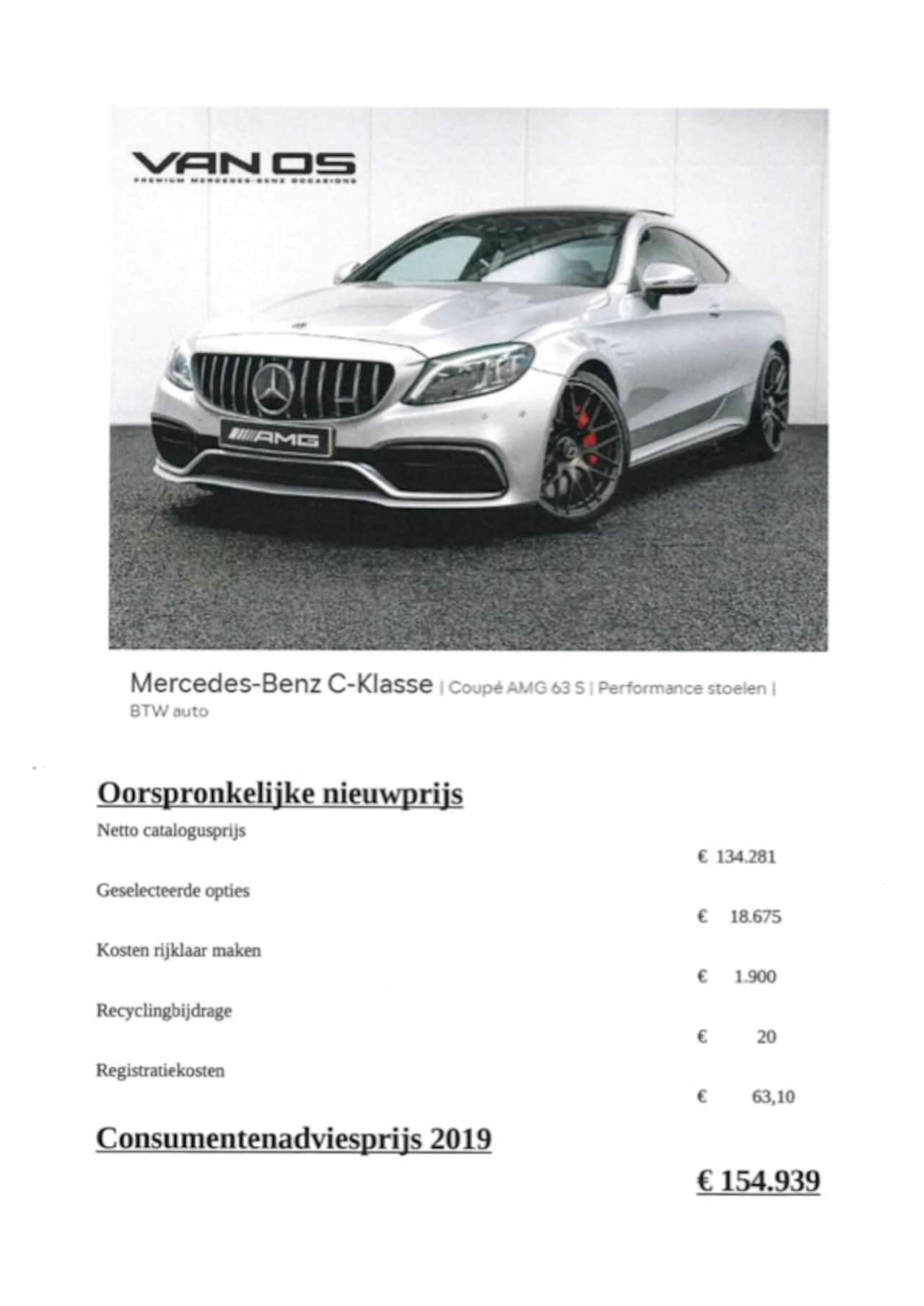 Mercedes-Benz C-klasse Coupé - AMG 63 S | Performance stoelen | BTW auto | Origineel NL