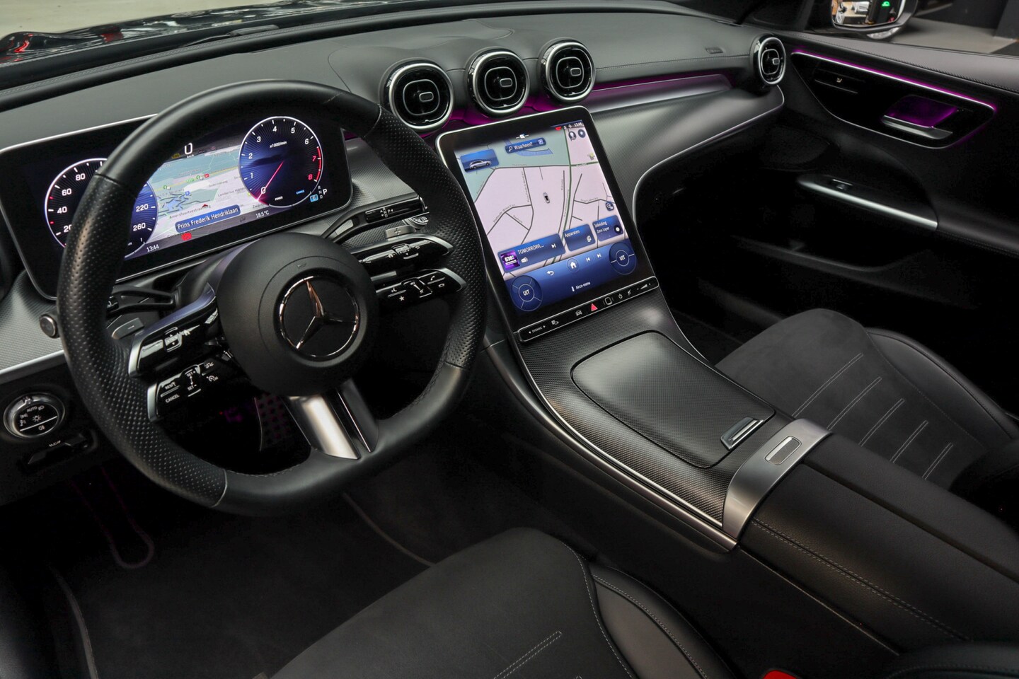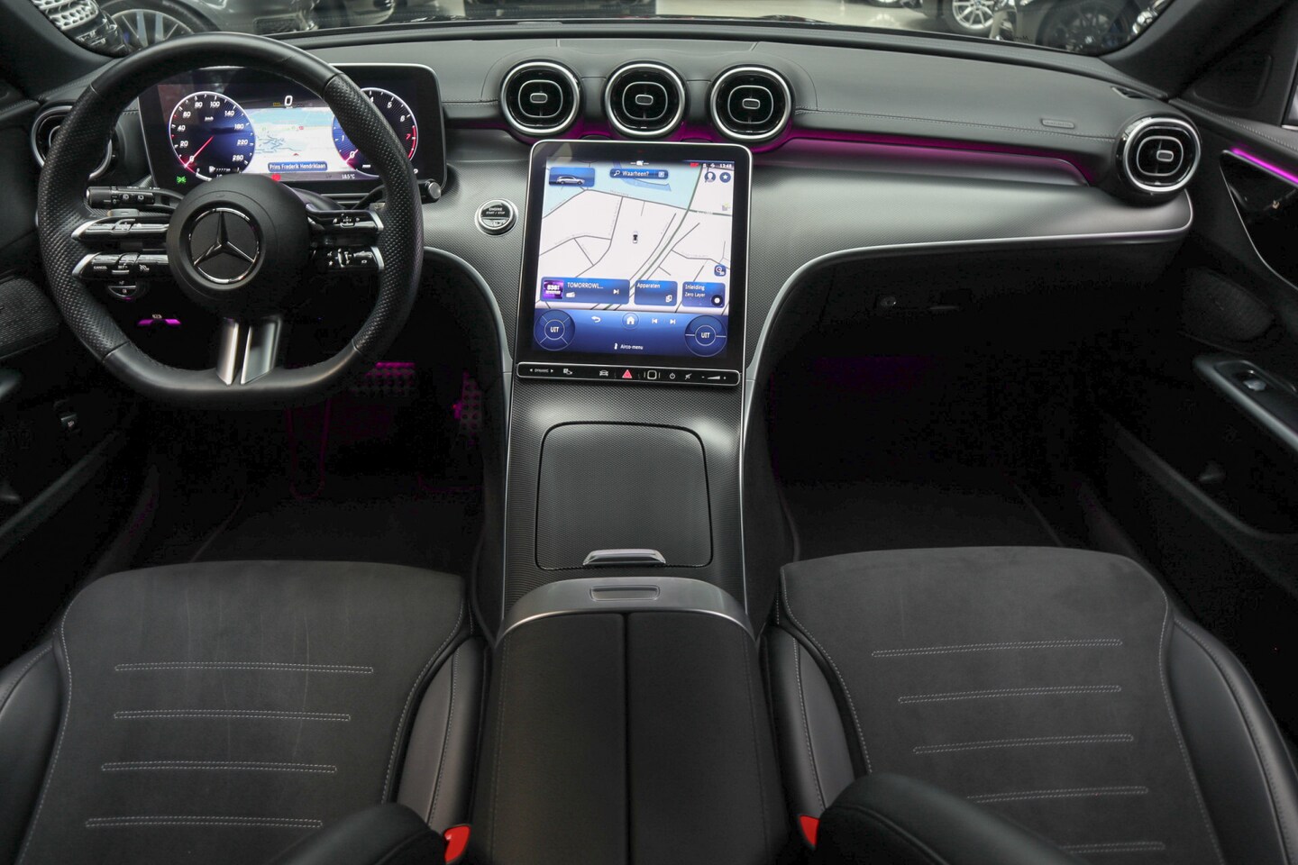 Mercedes-Benz C-klasse Estate - 180 AMG Line Navi Leer Camera Nightpack PTS Ambient Elekt. achterklep PTS LM velgen BTW au