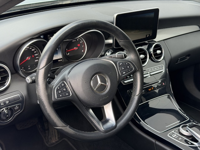 Deze C-Klasse is rijk uitgevoerd met onder andere Burmester, Adaptive Cruise control, Lederenbekleding, 360 graden camera en het grote navigatiesysteem.