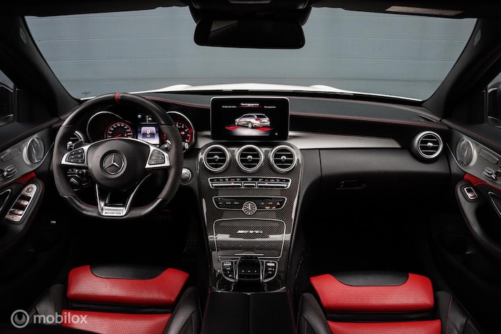 Deze Mercedes-AMG C63s beschikt over alle denkbare opties zoals onder andere: Seat-comfort-pakket, Koplamp LED High Performance, Stoelverwarming voor, Cruisecontrol met Afstandsregeling, Voorstoelen elektrisch verstelbaar met memory, AMG Driver's Package, Panoramisch zonnedak, Head-up-display, Automatische airconditioning, Intelligent Light systeem LED, Surround-systeem Burmester, Stoelbekleding/kussens: Leer Nappa, Ambienteverlichting, Interieurinrichting: Decoraties Carbon, Keyless-Go-pakket, Night-pakket (AMG), Dashboard Bovendeel in Nappa optiek, Sport-uitlaatsysteem (AMG-performance), Remzadels Rood gespoten.