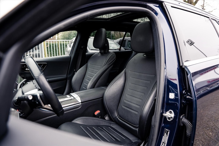 Een echt goede auto biedt meer dan alleen maar hoge prestaties en een comfortabele rit. Zo'n auto verrijkt uw leven door een optimale combinatie van doordachte vormgeving en hoogstaande techniek. Deze MERCEDES C-Klasse Estate is daar een goed voorbeeld van. De AMG-styling verfraait het uiterlijk met verschillende sportieve accenten. De aandrijving van deze MERCEDES wordt verzorgd door een viercilinder motor en een automatische transmissie. Leren bekleding versterkt de topklasse uitstraling van het interieur. U past de stoelen moeiteloos aan, ze zijn elektrisch in te stellen en hebben bovendien een geheugen. Een handige voorziening op deze auto is de elektrische achterklep die u op afstand kunt openen. Het glazen panoramadak zorgt ervoor dat u zich omringd voelt door de omgeving. Verder is de MERCEDES uitgerust met: high-performance LED-koplampen, AMG-styling, warmtewerend glas, dynamisch onderstel, zwarte hemelbekleding en neerklapbare achterbank.