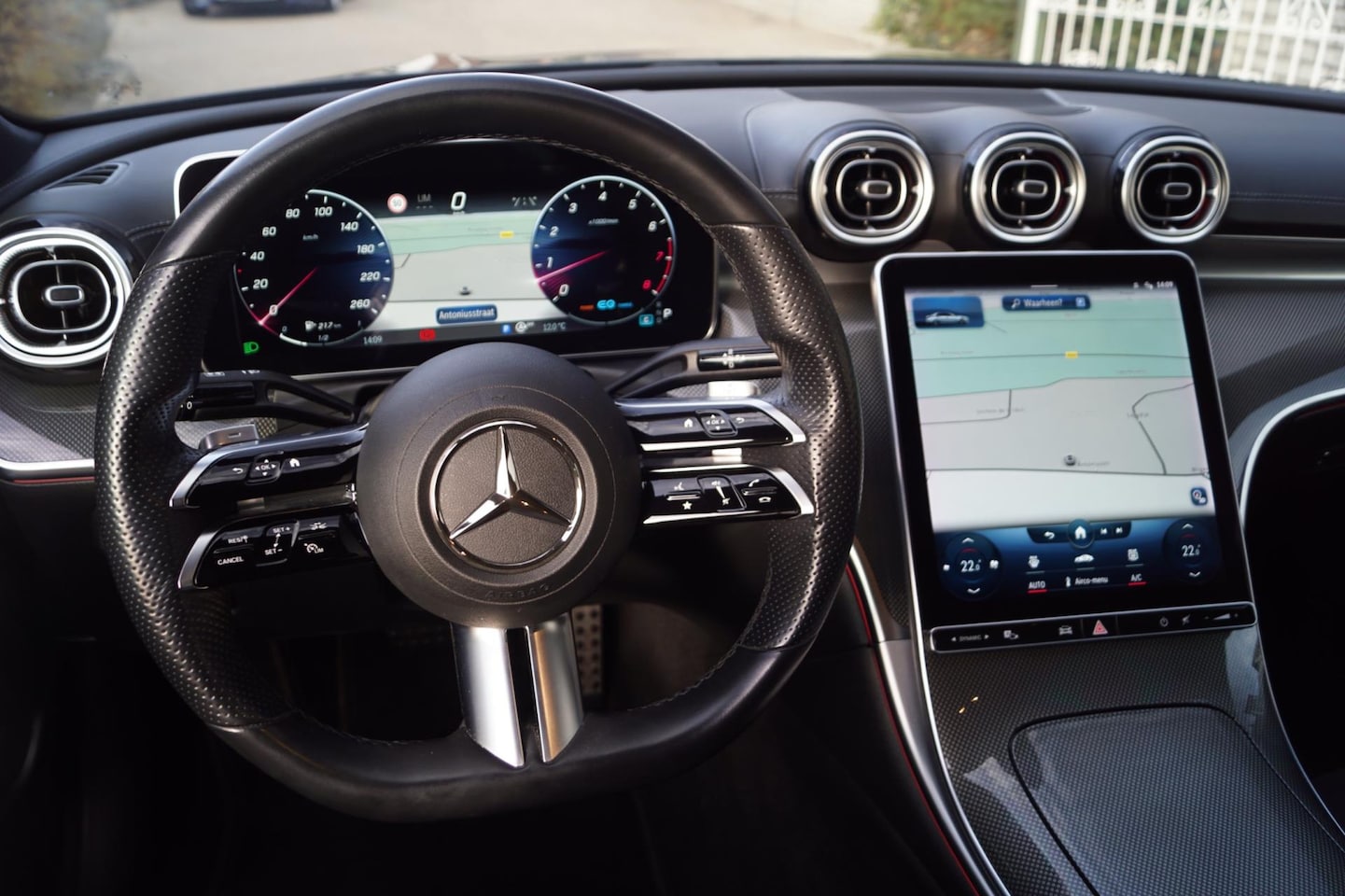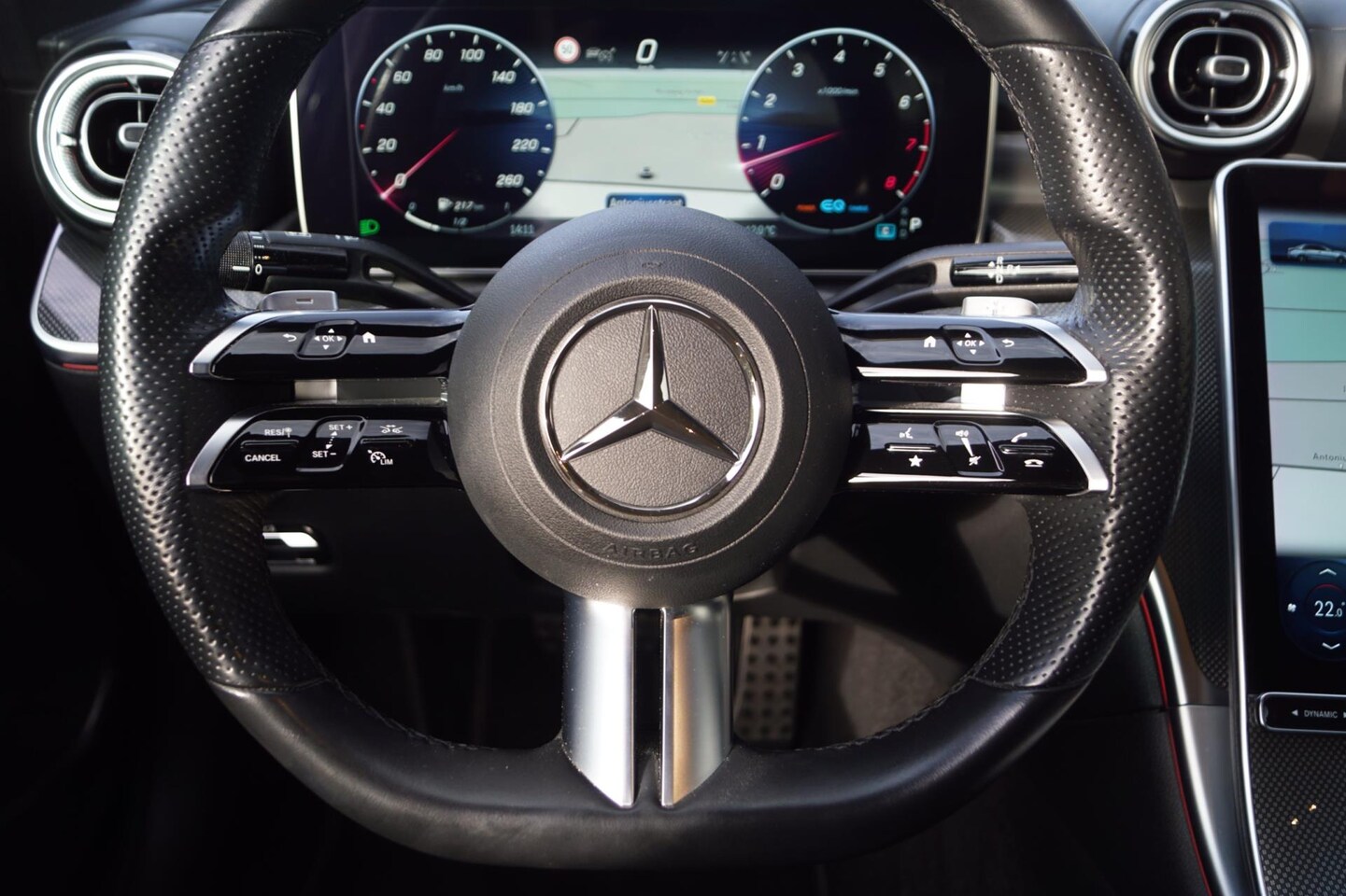 Mercedes-Benz C-klasse - 180 AMG Line Autom Leder/Alcantara Sportst Stoelverw Navi Camera Clima Adaptieve Cruise LE