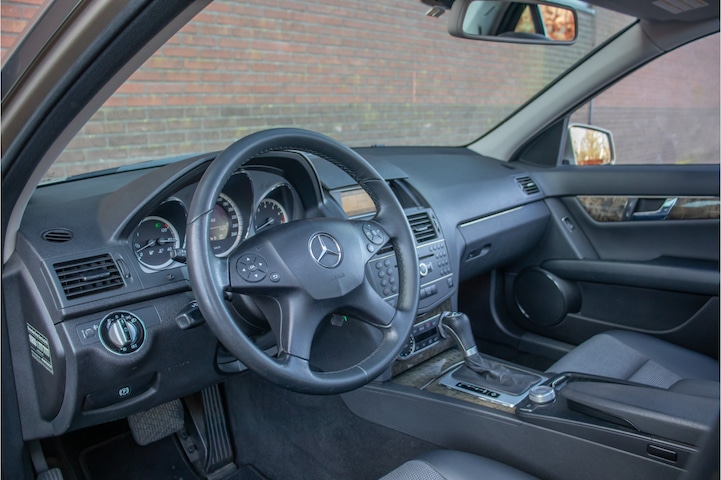 Deze C-klasse is daar zeker een goed voorbeeld van. De fraaie Manufakturlak 'Sanidienbeige' metallic is al geen gemeengoed maar in combinatie met stof 'Liverpool' / lederlook ARTICO bekleding en esdoornhouten sierlijsten is dit wel een heel stijlvolle en unieke verschijning. Wat daarna direct opvalt is de keurige staat waarin de auto verkeert, de betrekkelijk hoge kilometerstand is hier zeker niet aan af te zien.