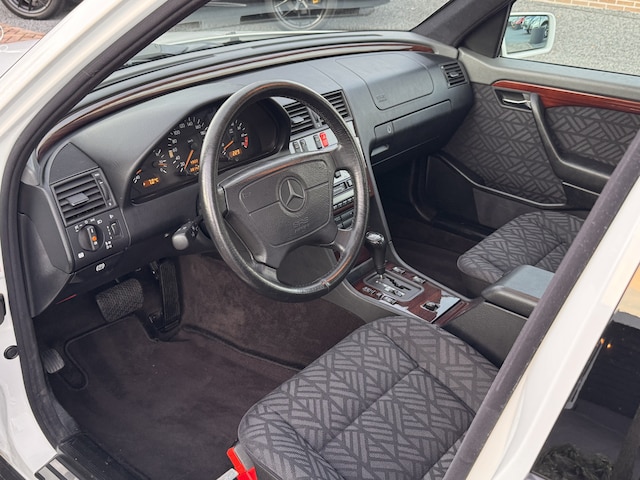 Mercedes was in 1995 zijn tijd ver vooruit en dat blijkt in deze C180 maar al te duidelijk. Het is namelijk een automaat. Uitgevoerd met het Elegance-pakket krijg je zelfs een schuifdak, lederen dashboard met prachtige houtinleg, comfortabele stoelen in nette staat en elektrische ramen. Onder de motorkap ligt de oersterke 1.8L 4 cilinder met 122 pk en 170 Nm koppel. Daarnaast verkeerd deze klassieker in erg nette staat, zowel van binnen als van buiten.