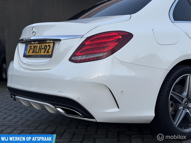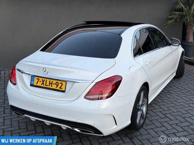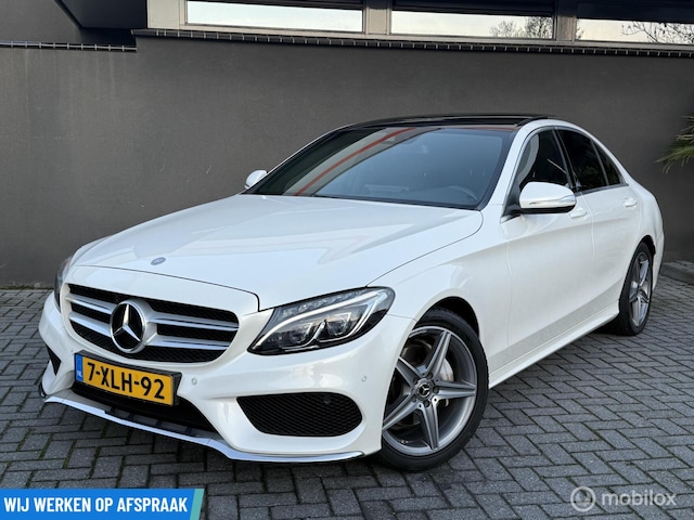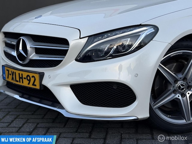 Supers nette en sportief uitgevoerde Mercedes C-klasse 180 Prestige, voorzien van het AMG-pakket, de gewilde kleur wit en uitgerust met panoramadak en Apple CarPlay.