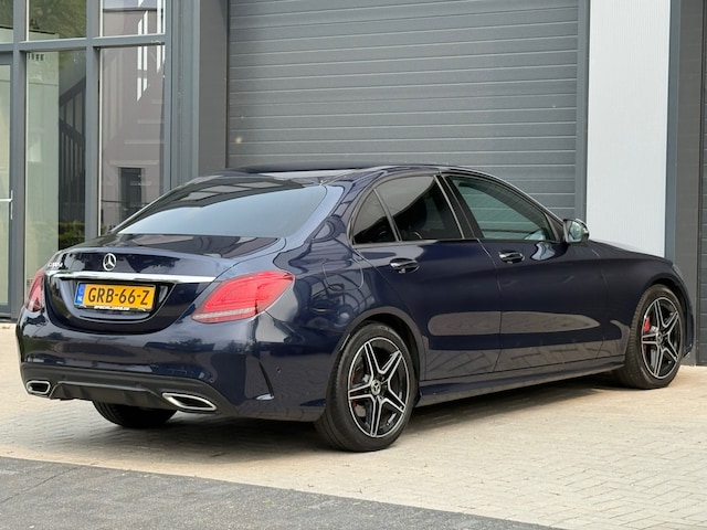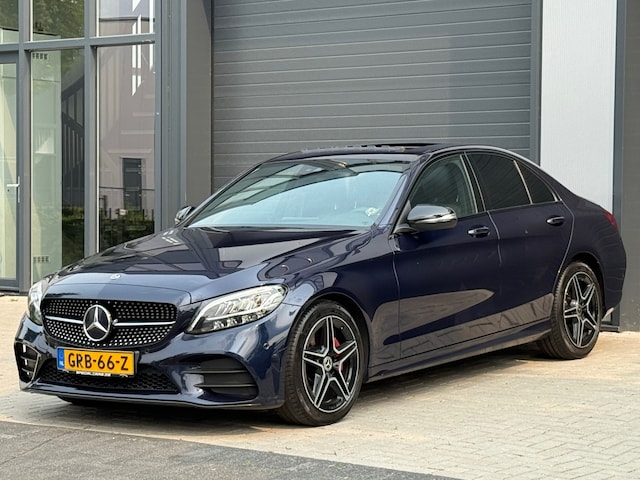 Een sportieve en luxe Mercedes-Benz C-klasse 200 d Business Solution AMG in prachtige blauwe metallic lak, voorzien van een automaat, panoramisch schuifdak, AMG-styling en een bijzonder rijke uitrusting. Deze sedan combineert rijcomfort, uitstraling en efficiency op hoog niveau.