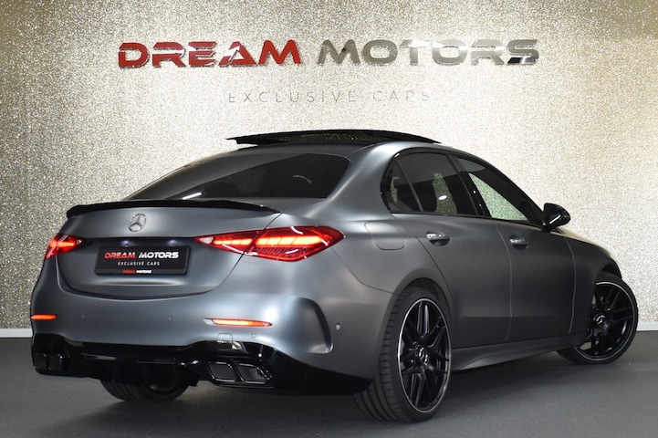 Mercedes-Benz C-klasse 300 e AMG 313pk | C63 AMG | MATGRIJS | MEMORY | 360'CAMERA | TREKHAAK | PANODAK | DISTRONIC | SFEERVERLICHTING | DIGITAL LIGHT | DODEHOEKASSISTENT | STUURVERWARMING | 20" AMG