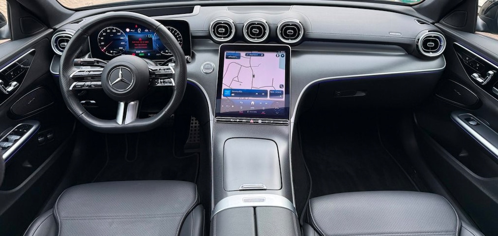 Mercedes-Benz C-klasse 300e in de chique en zeer complete AMG Line uitvoering.