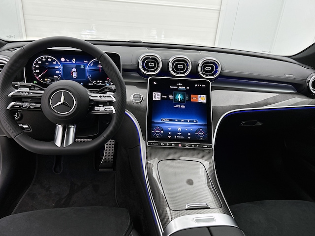 De Mercedes-Benz C-klasse combineert comfort met een uitstekende wegligging en dynamische rijkwaliteiten. Het AMG Line Exterieur pakket maakt direct duidelijk waar deze Mercedes-Benz voor staat: onversneden sportiviteit en rijdynamiek. Deze gloednieuwe wagen is onmiddellijk uit voorraad leverbaar. Deze Mercedes-Benz C-klasse is voorzien van zowel een elektromotor als een verbrandingsmotor. Ideale combi! Je past de stoelen moeiteloos aan, ze zijn elektrisch in te stellen en hebben bovendien een geheugen. De achterklep opent automatisch met een druk op de knop. Handig als je met volle handen staat. Het interieur baadt in een zee van licht door het glazen panoramadak. Bij de uitrusting van deze auto horen onder meer 19 inch lichtmetalen velgen, high-performance LED-koplampen, AMG Line Exterieur, warmtewerend glas, dynamisch onderstel en trailer assistent.