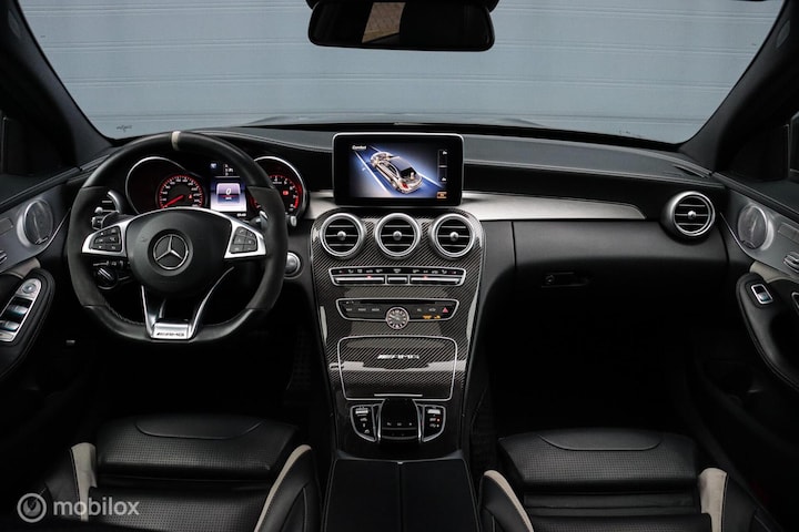 Deze Mercedes-AMG C63s beschikt over alle denkbare opties zoals onder andere: Audio-navigatiesysteem: COMAND Online, Metallic-lak, Adaptieve cruisecontrol, Rijassistent-pakket Plus, Elektrisch verstelbare voorstoelen met memory, Verwarmbare voorstoelen, AMG Driver's Package, Opbergruimte-pakket, Panoramisch zonnedak, Head-up-display, Automatische airconditioning, Intelligent Light systeem LED, Surround-systeem Burmester, Nappa lederen bekleding, Ambienteverlichting, Keyless, Keramisch remsysteem, Carbon interieur, Parkeer-pakket, Spiegelpakket, Night-pakket (AMG), Sport-uitlaatsysteem (AMG-performance).