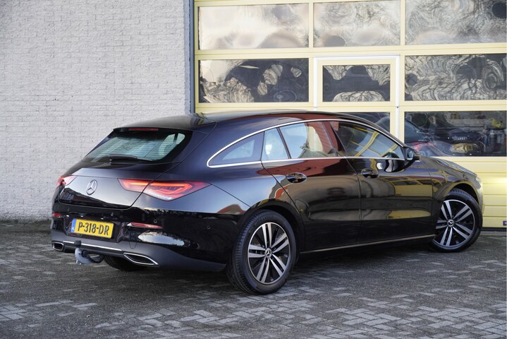 Mercedes-Benz CLA-klasse Shooting Brake met de zeer luxe aanwezige opties als Lichtmetalen velgen | Led dagrijverlichting | Led koplampen | Led achterlichten | Parkeersensoren | Elektrische trekhaak | Elektrisch achterklep | Achteruitrijcamera | Navigatiesysteem | Virtual cockpit | Climate control | Cruise control | Sportstoelen | Verwarmde voorstoelen | Zwarte hemel | Getint glas.
