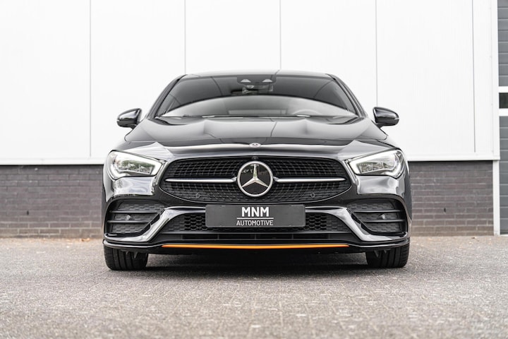 Een zeer sportieve en rijk uitgevoerde Mercedes CLA250 Orange Art Edition AMG-Line uit 2019.