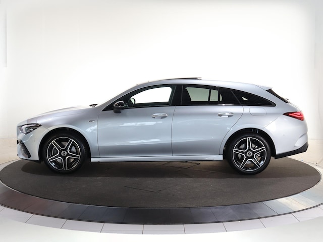 Als je motto is 'The best or nothing', laat je zien dat je ambities hebt. Maar dat wisten we van Mercedes al heel lang. Wordt dit uw eerste Mercedes of de volgende in een lange rij? In beide gevallen heeft u helemaal gelijk. Voor de echte liefhebber is de AMG-styling natuurlijk een dikke plus. Dit is een splinternieuwe auto, die nu uit voorraad leverbaar is. Brandstofmotor, elektromotor? Deze hybride Mercedes-Benz CLA-klasse Shooting Brake combineert ze. En dat is te merken bij de pomp, want die ziet u voortaan minder vaak. In de verwarmbare voorstoelen zitten is elke keer een welkom gevoel. De sportstoelen zorgen voor een strak uiterlijk én een uitstekende zitsteun. De bagageruimte is toegankelijk via een comfortverhogende elektrische achterklep. Onderweg heeft u extra veel te zien dankzij het glazen panoramadak. De koplampen zijn voorzien van de allernieuwste lichttechnologie: matrix LED-verlichting. Bij de zeer complete uitrusting van deze auto behoren ook 18 inch lichtmetalen velgen, AMG-styling, warmtewerend glas, in delen neerklapbare achterbank, verstelbare lendensteunen en snelheidsafhankelijke stuurbekrachtiging.
