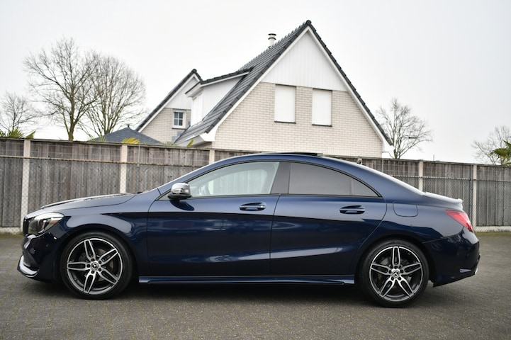 Prachtige, origineel Nederlandse Mercedes-Benz CLA 180 AMG-Line uit 2017, uitgevoerd in de bijzonder mooie kleur Cavansite Blue Metallic.