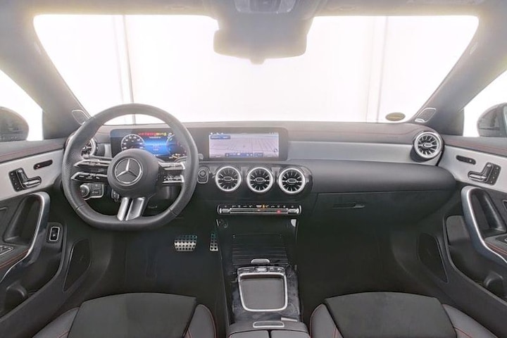 Geen mediterrane druktemaker, geen Franse charmeur. Deze Duitse auto straalt een en al stevige kwaliteit uit. Stalen onverzettelijkheid van topniveau, een en al kracht en betrouwbaarheid. Met de AMG-styling laat dit model zich van zijn meest dynamische kant zien. Deze hybride Mercedes-Benz CLA gaat slim om met energie. Door rijden en remmen wordt de accu van de elektromotor opgeladen, die de brandstofmotor en handje helpt of zelfs de aandrijving overneemt. De ruime lichtinval door het elektrisch bediende glazen panorama dak zorgt voor een heerlijk ruim gevoel. Met één klik te openen voor frisse lucht en een mild windje in de auto. Dat is gemak en plezier! Overigens is het happy-klik gevoel ook aanwezig bij de elektrisch bedienbare achterklep. Dankzij de elektrische stoelbediening is het gemakkelijk om de optimale zitpositie te vinden. Wind, sneeuw, hagel, regen... allemaal vergeten als je het verwarmd stuurwiel in handen hebt. De koplampen geven het beste zicht ooit, met de matrix LED-verlichting. Ook 19 inch lichtmetalen velgen, AMG-styling, donker getint glas achter, in delen neerklapbare achterbank, LED-achterlichten en verstelbare lendensteunen horen tot de voorzieningen op deze auto.