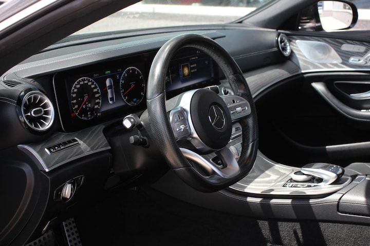 Bij het ontwerpen van de Mercedes-Benz CLS-klasse stonden uw comfort en uw veiligheid centraal. De uitgesproken AMG Line Exterieur voegt een reeks sportieve accenten aan de vormgeving toe. De uitstekende prestaties van deze auto komen van de zescilinder benzinemotor en de automatische transmissie. Laat de zon maar schijnen door het elektrisch bediende glazen panorama dak en hou een handje over dankzij de elektrisch bedienbare achterklep. Niks vergeten? O ja toch: het lederen interieur moeten we zeker even noemen. U past de stoelen moeiteloos aan, ze zijn elektrisch in te stellen en hebben bovendien een geheugen. De koplampen zijn voorzien van matrix LED-verlichting waarmee u aanzienlijk verder kan kijken in het donker. Het systeem past zelf de lichtstraal aan op het moment tegenliggers verblind kunnen worden. Tot de voorzieningen van deze auto behoren 19 inch lichtmetalen velgen, AMG Line Exterieur, adaptief dempingsysteem, zwarte hemelbekleding, in delen neerklapbare achterbank en LED-achterlichten.