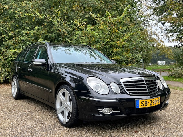 Mercedes-Benz E-klasse Estate 320 CDI met 224 pk met 6 traps automaatbak in de uitvoering Avantgarde met o.a. de navolgende opties en accessoires: Lederbekleding, Schuif/kanteldak, lichtmetalen velgen, Navigatie, stoelverwarming, climaatcontrol, cruise control, en nog veel meer