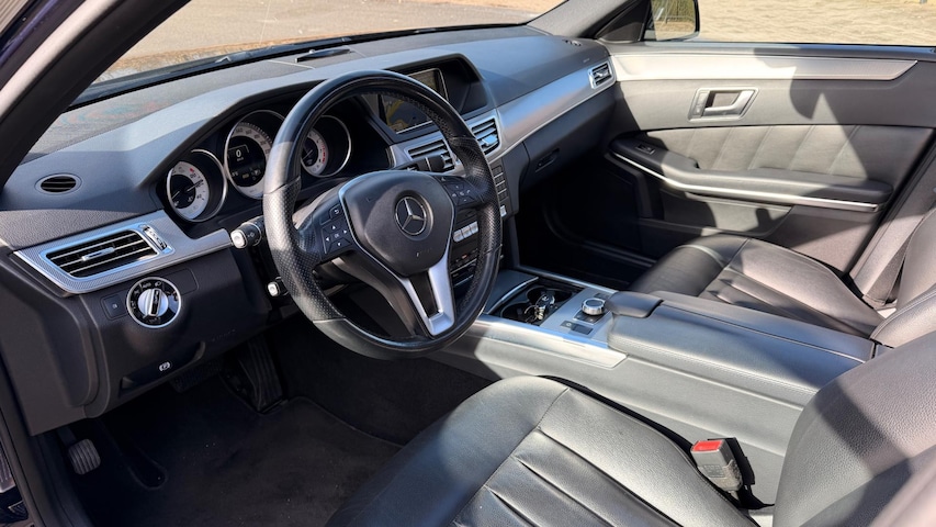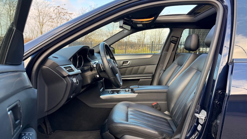 Dit model wordt geleverd met een uitgebreide optielijst: van **elektrisch verstelbare en verwarmde stoelen met geheugen** tot een **elektrisch glazen panoramadak**, het premium **audio high end-installatiesysteem**, en een **navigatiesysteem full map + hard disk**. Daarnaast is de E-klasse uitgerust met uitgebreide veiligheidssystemen zoals **rijstrooksensor**, **dodehoekdetectie**, **verkeersbordherkenning** en **Autonomous Emergency Braking**. Parkeren wordt effortless dankzij de **achteruitrijcamera**, parkeersensoren en de parkeerassistent.