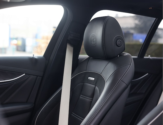 Het interieur is ook meegenomen in deze bijzondere samenstelling; het nappalederen en Alcantara AMG stuur, de AMG vloermatten en de zilveren gordels geeft het geheel een sportieve en luxe uitstraling die perfect aansluit bij het exclusieve karakter van deze uitvoering. Het Burmester soundsysteem en de uitgebreide uitrusting maken elke rit comfortabel en compleet.