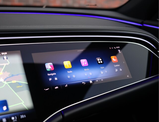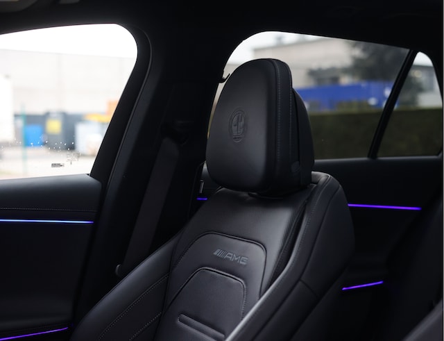 Binnenin vindt u een luxueuze omgeving waarin elk detail klopt. Het zwarte nappaleder op de stoelen en het dashboard, de hoogwaardige houtafwerking en de sfeerverlichting creëren een ambiance die u zowel overdag als ’s avonds weet te verrassen. Voorstoelen met verwarming en ventilatie, verwarmde achterstoelen en een verwarmd AMG stuurwiel zorgen ervoor dat u altijd in comfort onderweg bent. Daarnaast geniet u optimaal van uw favoriete muziek met het Burmester geluidssysteem en heeft uw passagier een eigen display voor vermaak onderweg.