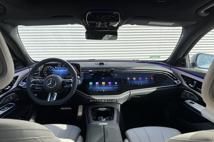 Modern design en bijzondere techniek bepalen de kwaliteiten van de hybride Mercedes-Benz E-klasse. De AMG-styling verfraait het uiterlijk met verschillende sportieve accenten. We hebben het hier over een nieuwe auto, hij is nu direct leverbaar. De hybride motor combineert een elektromotor met een verbrandingsmotor. Je kan dus kiezen. Zit je goed? De stoelen zijn eenvoudig instelbaar dankzij de elektrische bediening met geheugen. Een heerlijk zonnetje, of indrukwekkende wolkenpartijen? Bekijk ze onbelemmerd door het elektrisch bediende glazen panoramadak. De koplampen met matrix LED-verlichting zijn het hoogst haalbare op het gebied van autoverlichting. Tot de uitrusting behoren ook 20 inch lichtmetalen velgen, AMG-styling, adaptief dempingsysteem, warmtewerend glas, in delen neerklapbare achterbank en LED-achterlichten.