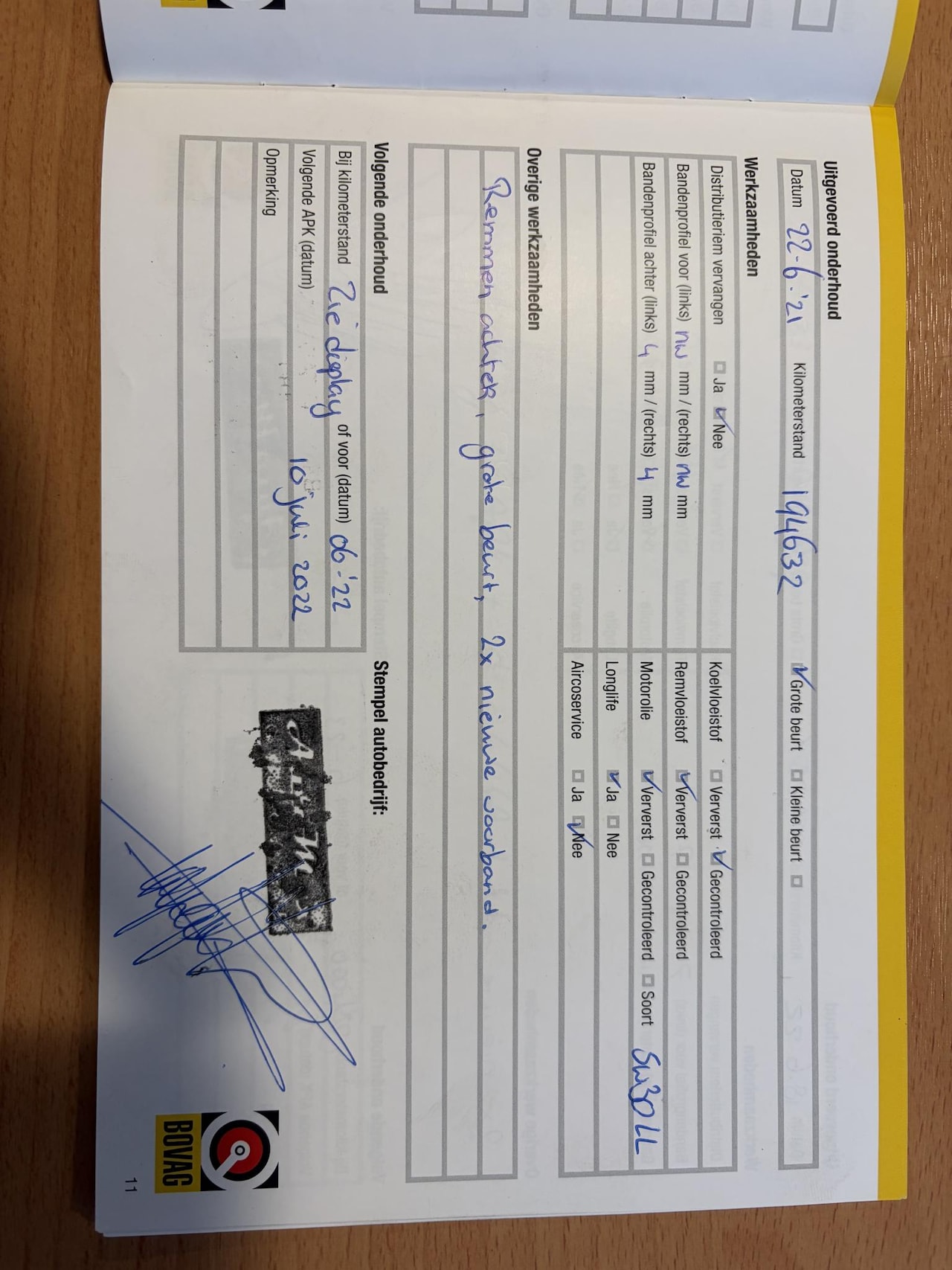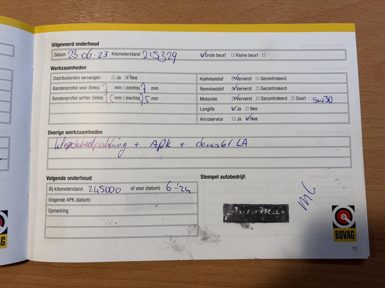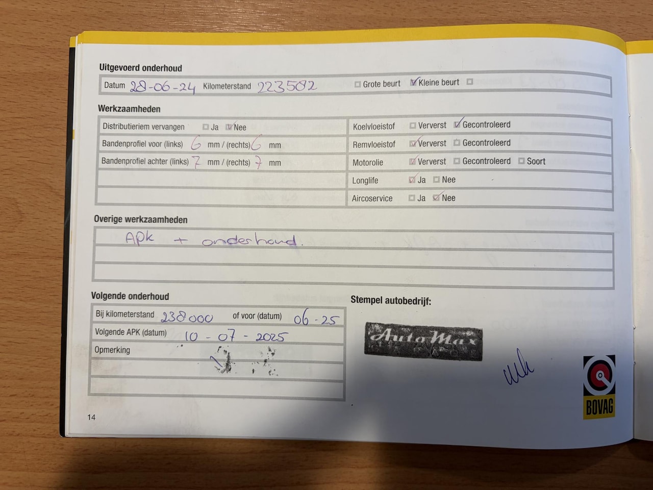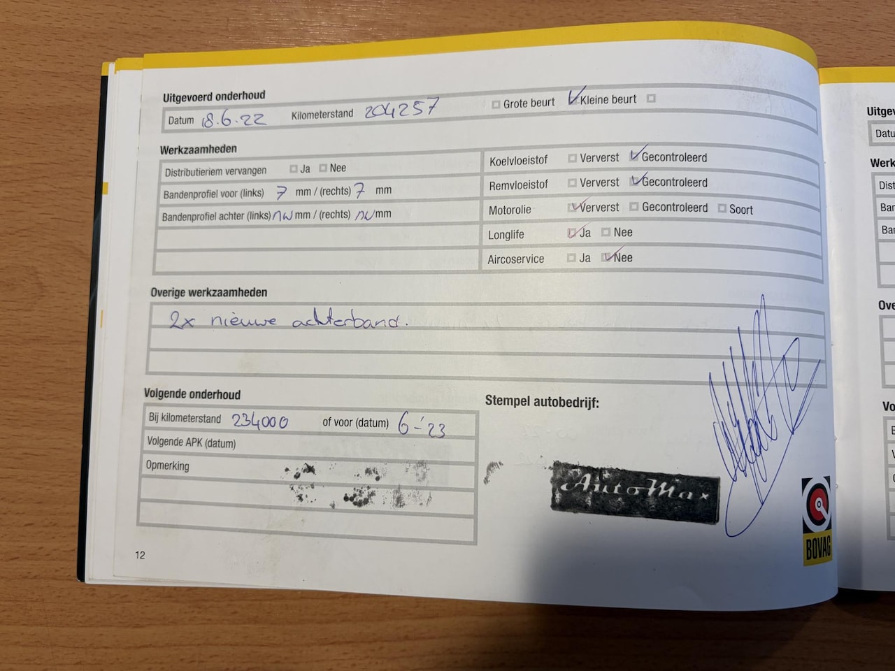 | APK | Bij aflevering |