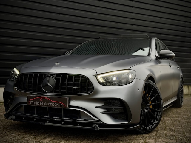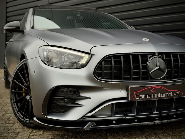 Fascinerende Mercedes-Benz E-klasse 300 e hybride AMG met compleet E53 AMG optiek! Origineel Nederlands geleverd, afkomstig van 2e eigenaar en samengesteld met de - origineel - AMG Manufaktur 'Selenietgrijs' Magno matte lak aan het exterieur.