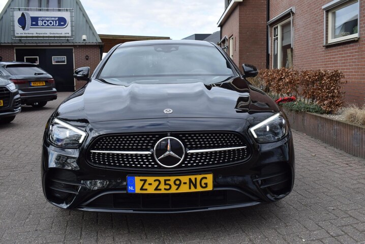 ZEER NETTE Mercedes-Benz E-klasse 300 e AMG Line PANORAMA DAK/ADAPTIEVE CRUISECONTROL/SFEERVERLICHTING/LEDER/TREKHAAK AFNEEMBAAR/XENON LED MATRIX/NAVI/CAMERA 360gr/APPLE CARPLAY/PDC VOOR+ACHTER/LMW 18 INCH/APK 30-04-2026/BJ 19-02-2021/ONDERHOUDS HISTORIE EN RESERVE SLEUTEL AANWEZIG