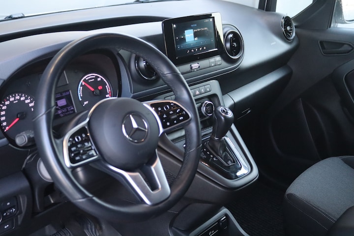 De eCitan is o.a. voorzien van automatische airco, 7" MBUX multimediasysteem met Apple CarPlay en Android Auto, navigatie, snellaadfunctie, cruise control en stoelverwarming.