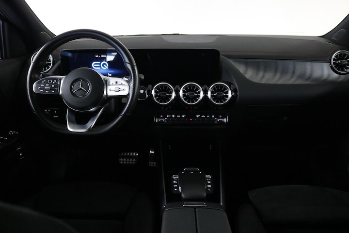 Het moderne digitale dashboard geeft u in één oogopslag inzicht in alle belangrijke functies. Parkeren wordt kinderspel dankzij de achteruitrijcamera. Met spraaksturing bedient u functies veilig onderweg, terwijl remote services u via uw smartphone altijd in contact houden met de auto. Het navigatiesysteem met harde schijf brengt u snel en efficiënt naar elke bestemming. Uiteraard is deze EQA ook uitgerust met electronic climate control, DAB-radio, regensensor, cruise control, een sportstuurwiel en automatisch dimmende buitenspiegels.