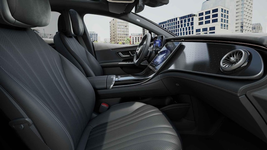 De Mercedes-Benz EQE is uw trouwe partner onderweg, want hij houdt continu voor u de situatie op en om de weg in de gaten. Volautomatische veiligheidssystemen kunnen daarbij ingrijpen om u voor gevaarlijke situaties te behoeden. Net als in een straaljager kunt u altijd vooruit blijven kijken. De head-up display zorgt dat uw ogen geen seconde hoeven af te dwalen en projecteert alle benodigde info op de voorruit.. Indien u onbedoeld de rijstrook lijkt te verlaten, reageert het Lane-keeping systeem meteen en corrigeert. De veiligheid van deze auto wordt verder verhoogd door frontale botsbescherming en bandenspanningcontrolesysteem.