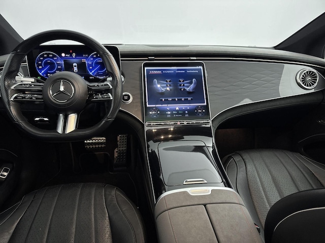 Half werk zul je bij geen enkele Mercedes tegenkomen. 'The best or nothing', inderdaad. Je zult verrast zijn door de power van de elektromotor. En stil! Lekker sportief en een tikkie stoer: de AMG-styling geeft een hele dynamische uitstraling. De luxe van het lederen interieur, gecombineerd met het gemak van het elektrisch bediende glazen panorama dak en de superhandige elektrisch bedienbare achterklep zorgen voor een wel heel complete uitvoering. De verwarmbare voorstoelen met massagefunctie, het verwarmbare stuurwiel en de achterbankverwarming zorgen ervoor dat kou geen kans krijgt, en benadrukt dat dit een regelrechte verwenauto is. Zit je goed? De stoelen zijn eenvoudig instelbaar dankzij de elektrische bediening met geheugen. Op ieder wegdek een rimpelloze wegligging: dat is het voordeel van luchtvering. De geavanceerde matrix LED-verlichting in de koplampen levert maximaal helder zicht en past zich subtiel aan zodra er een tegenligger komt. Zonder lichtkwaliteitsverlies! Ook 21 inch lichtmetalen velgen, AMG-styling, warmtewerend glas, verstelbare lendensteunen en verwarmde ruitensproeiers horen tot de voorzieningen op deze auto.